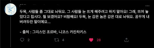 그리스인 조르바영감님이 말씀하셨듯, 사람들 눈을 뜨게 하지말아요. 알아서 뜨게 될테니깐요.
