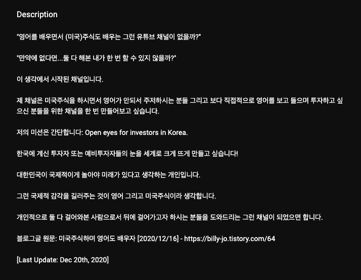 그렇게 호기심으로 시작된 투자는 지적 체조로 변모했고 지금은 유튜브에서 소소하게 미국 주식 일기를 쓰고 있다.