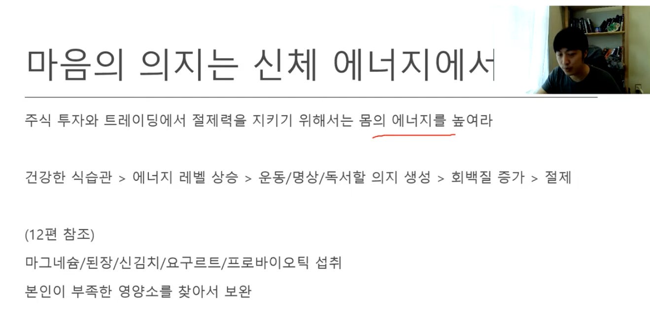 빌리조: 결국 운동해야 합니다. 잠 잘자는게 저는 중요하다고 생각해요. 월가아재님이 좋은 말씀해주셨는데 수면을 빼서 아쉽네요.