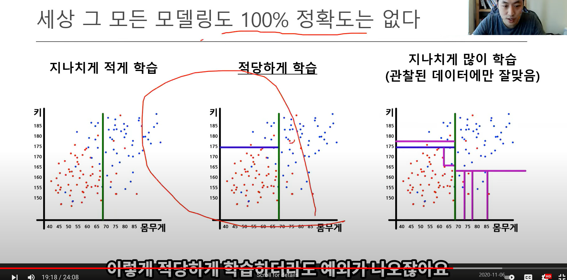 적당하게 기계학습 하는것이 좋은 데이터 모델이 좋다.