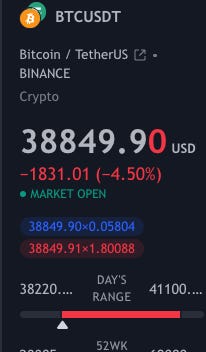 비트코인 4만불선 붕괴. 기다리길 잘했다. 급하게 살 필요가 없다는 것을 다시한번 시장은 말씀해주셨다. 지난 21년 2월 테슬라 바닥 몰빵의 교훈 ($750불이 바닥인줄 알고 몰빵 쳤다가 500불까지 떨어짐) 잊지않고 잘했다. 앞으로 현금 마르지 않도록 조심히 투자하자.