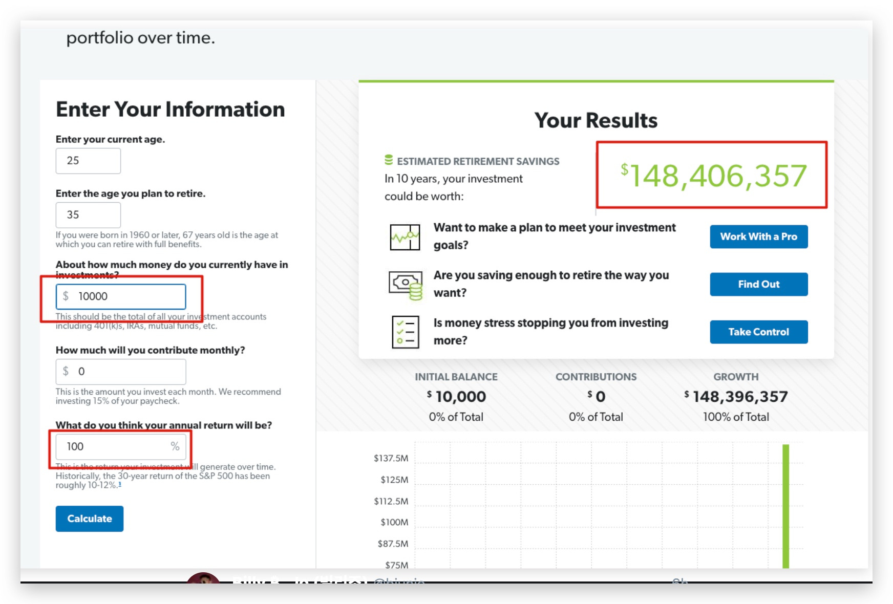 즉 꾸준하게 먹어도, 비트코인($BTC) 역사적평균 수익률에서 반 만 되어도 매년 50%씩 커지면 10년뒤 복리수익을 보시면 이렇습니다.