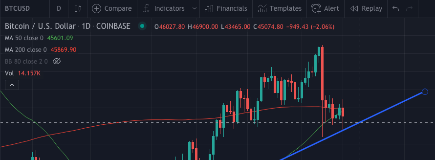 비트코인 기준으로 봤을때 44.5k 정도에서 지지를 받고 올라갈 것인지 난 주목하고 있다. 다시 튕겨 올라가면 상승할 여지가 높다고 판명되나, 어찌될지 몰라서 일단 현금들고 지켜보기로 결정.
