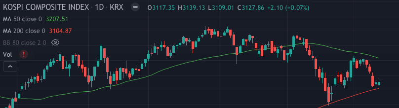 코스피의 경우 200일 이평선에서 지지를 잘 해주는 걸로 보아 미국 또는 중국장에서 큰 하락이 없다면 지금 분할매수하는게 좋을 듯 하다