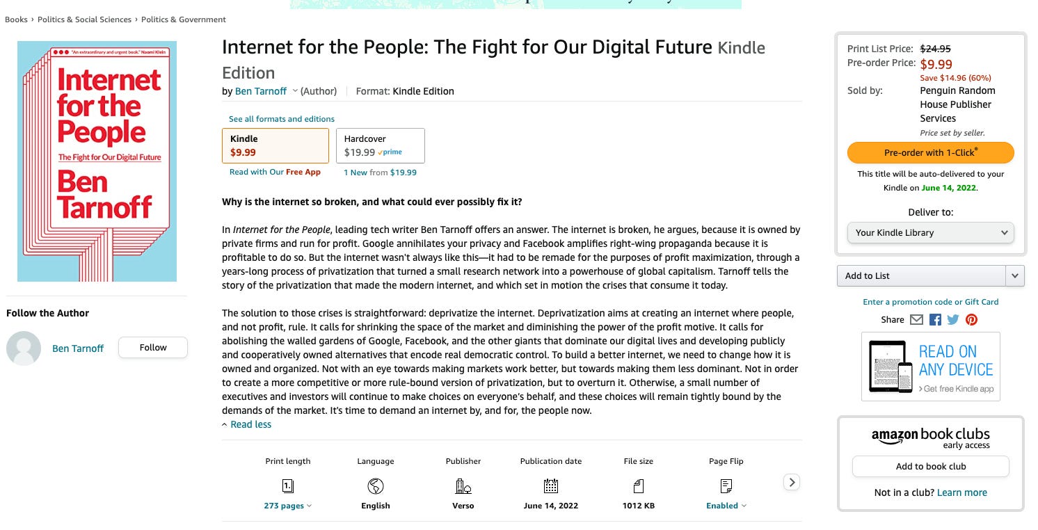 16/ This [Tarnoff’s book] sounds [one of ] the most stupid thing[s] I've ever heard how to rebuild the internet. Does it have to be this effort? I see we agree on the problem but the solution is different. I don't see profit motives are necessarily bad, but Mr. Tarnoff thinks it's bad.