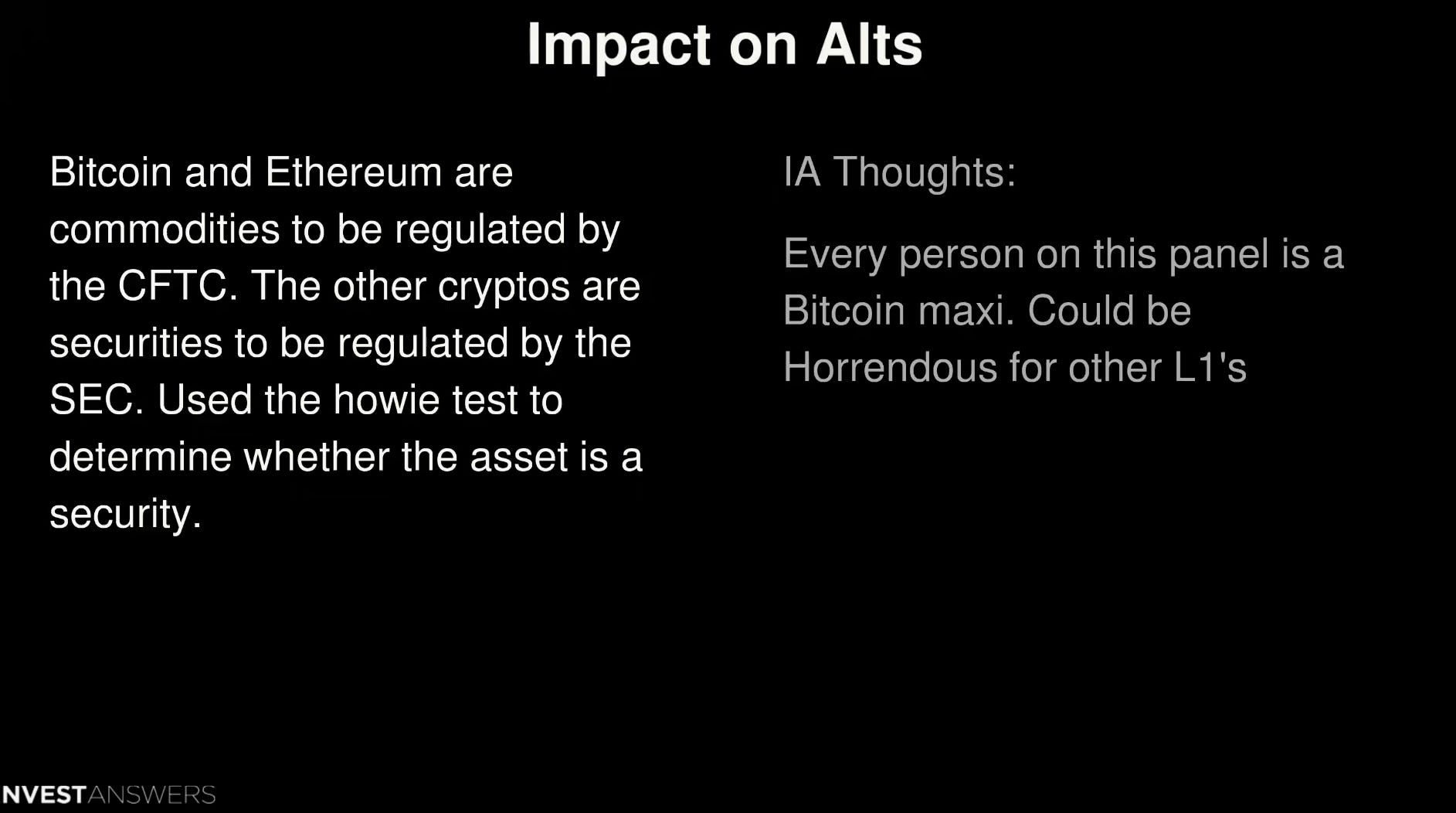 Bitcoin and ETH as commodities but not the alts.